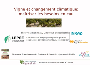 Avec la hausse des températures, l’évapotranspiration augmente dans les vignobles jusqu’à dépasser le stockage d’eau de pluie dans les sols. Le 9 décembre 2024, Thierry Simonneau (UMR LEPSE) nous présente différents leviers de gestion des besoins en eau, à raisonner de manière systémique.