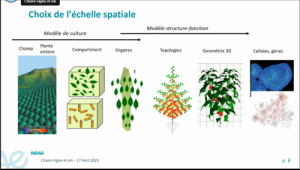 Le sixième épisode s’est tenu le 24 avril 2023. Benoît Pallas, Rami Albasha et Stathis Delivorias (UMR LEPSE) ont présenté leurs travaux. La modélisation des plantes couplant une représentation de l’architecture et une simulation du fonctionnement carboné et hydrique peut être utilisée pour rationaliser le choix du couple cépage – pratiques.