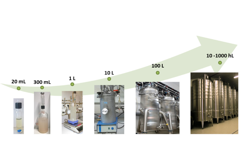 Les nouvelles questions de recherche posées en œnologie doivent être abordées en utilisant différentes échelles pour pouvoir traiter aussi bien les phases de screening sur un grand nombre d’échantillons que les tests à l’échelle pilote ou industrielle. La problématique explorée à travers ce stage est la suivante : quelle échelle de travail pour quelle question ?